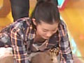 生放送で子犬を柵の中へ入れようと屈んだら胸元がパックリ開いてブラ見えハプニング!