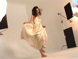 自らデザインした衣装を着ての撮影風景で、ノーブラにジャケットを着て動いてたらジャケットが捲れておっぱいポロリンハプニング!おっぱいが殆ど見えちゃってます♪