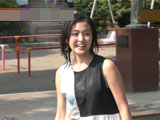 水をぶっかけられビショビショで起き上がろうとしたら胸元の隙間からブラ見えハプニング!