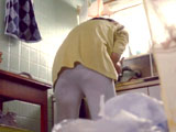 ペラペラのジャージで屈んだらパンツがモロ透けハプニング!