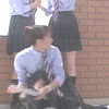 | NGシーンでミニスカ学生服でしゃがんだらパンツ見えちゃったハプニング! |