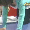 | 生放送で台の上に乗せられ四つん這いになったところを撮られユルユルの胸元からブラモロ見えハプニング! |