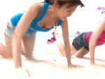 | ジャングルビンゴで短パン四つん這い姿を後ろから撮られユルユルの胸元からブラモロ見えハプニング! |