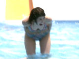 | 番組に遅刻してきて一杯一杯だったのか、その場で水着に着替えさせられアピールポーズをさせられたらワレ目に水着がクイ込んじゃってたハプニング! |