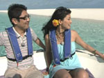 | 生放送でボートから砂浜を見ようと振り返ったらお股がパックリ開いてパンツモロ見えハプニング! |