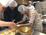 | お菓子作りで屈んだら胸元の隙間からブラモロ見えハプニング! |