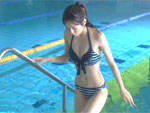 | 深夜のバラエティ番組で本編とは別に後ろから隠し撮りしているカメラで、後ろを気にしていなかったのかビキニがお尻にクイ込んで一本線が入っちゃってるハプニング! |