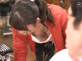 胸チラに気付かず働く美人店員(真宮あやな)